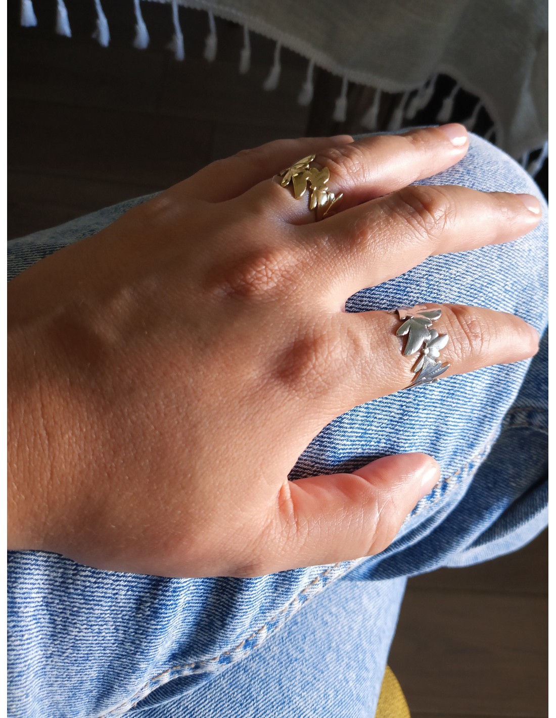 El anillo mariposa es una pieza delicada y elegante que combina la frescura de la naturaleza con la resistencia del acero inoxidable. Su diseño abierto con forma de mariposas estilizadas se adapta cómodamente al dedo, aportando un toque moderno y femenino a cualquier look. Fabricado en acero inoxidable de alta calidad, este anillo no se oxida, no pierde color y es perfecto para usar a diario. Ideal para quienes buscan anillos ajustables de acero inoxidable con diseño único.