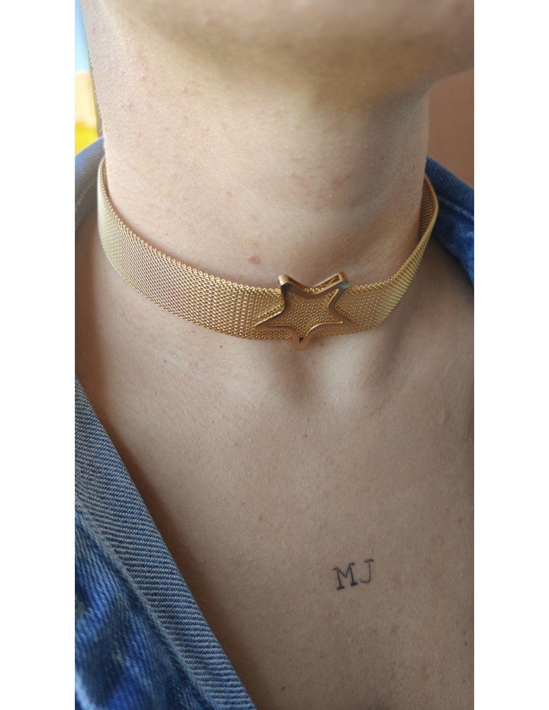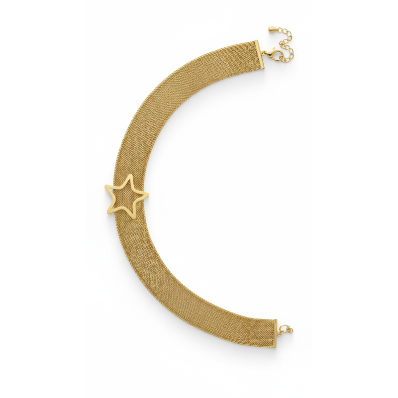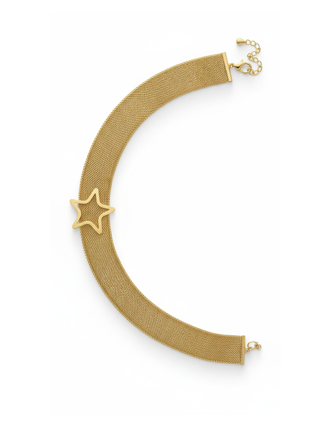 Destaca tu elegancia con este choker dorado adornado con una estrella, símbolo de luz, esperanza y energía positiva.