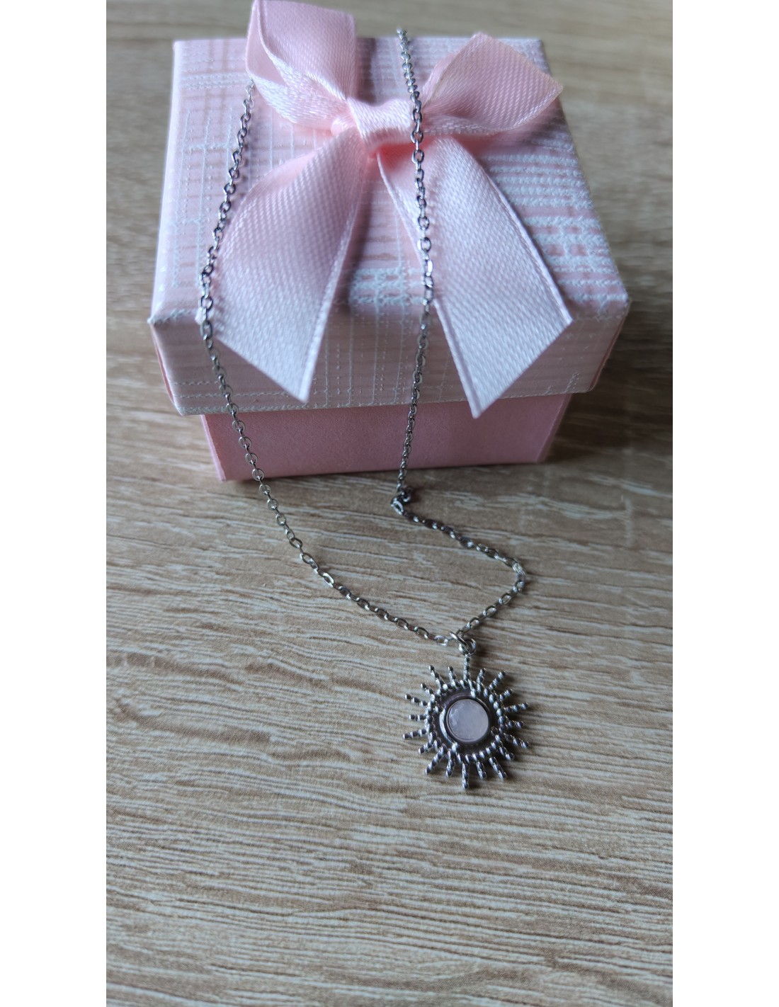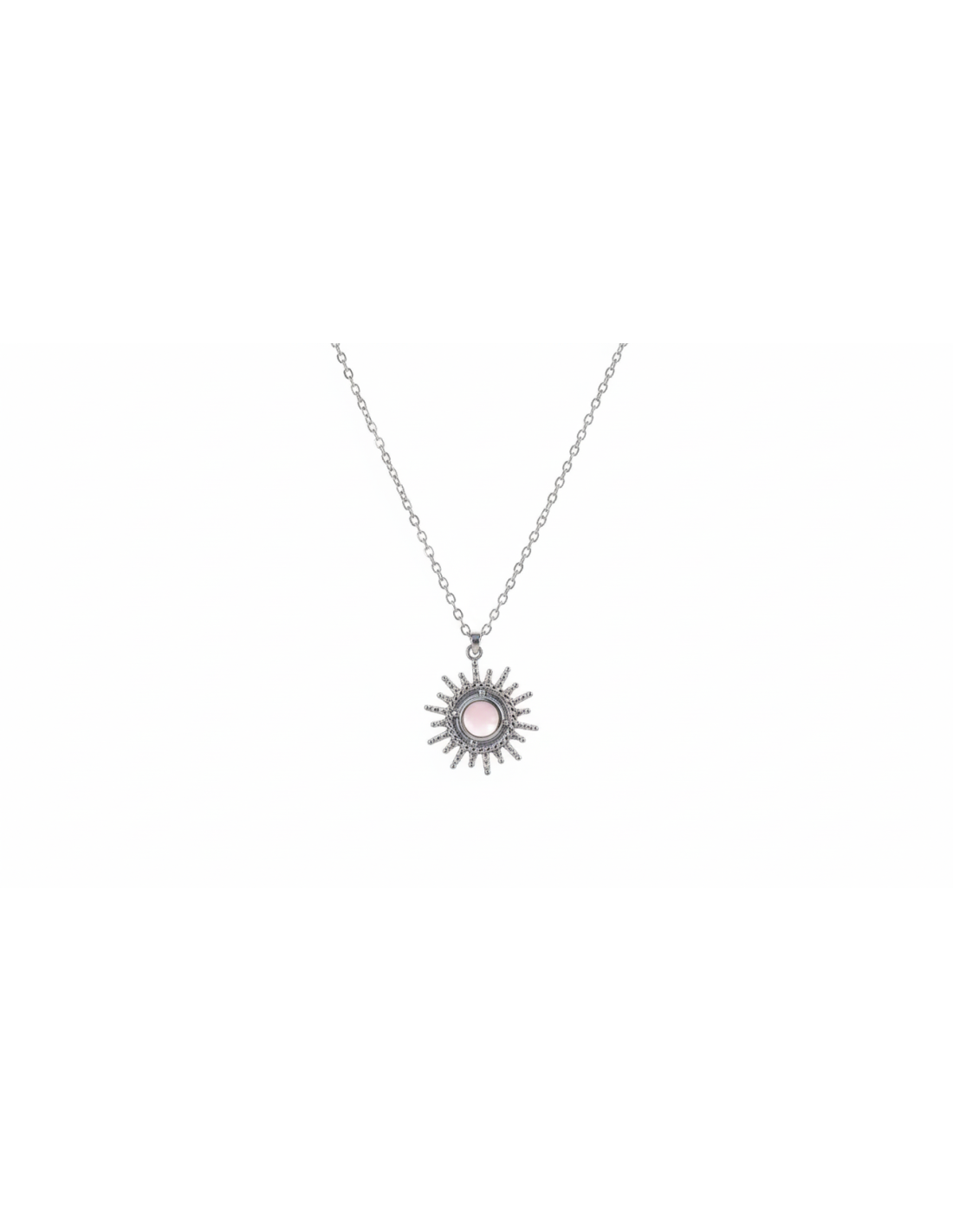 Este collar de acero inoxidable combina elegancia y simbolismo con su diseño de sol. Una joya versátil y moderna, ideal para iluminar cualquier outfit con un toque de sofisticación. Fabricado en acero inoxidable de alta calidad, garantiza resistencia, brillo duradero y un acabado que mantiene su encanto con el paso del tiempo. Un accesorio imprescindible para mujeres que buscan estilo y distinción en su joyería.