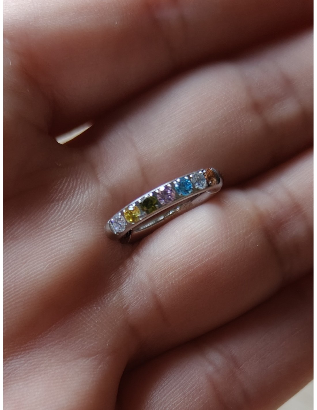 El pendiente arcoíris plateado destaca por su delicadeza y estilo moderno. Están fabricados en acero inoxidable plateado, un material resistente y antialérgico que mantiene su brillo por más tiempo. Su diseño incorpora pequeños brillitos de varios colores, que aportan un toque alegre y versátil, perfecto para iluminar cualquier look. Ideales para quienes buscan un pendiente elegante, juvenil y fácil de combinar tanto en el día a día como en ocasiones especiales.